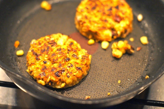 4 ) Lors de la cuisson, ajoutez un peu d’huile dans votre poêle, et quand elle est bien chaude, posez vos galettes. Attention, elles sont fragiles, laissez les cuire quelques minutes sur la première face (jusqu’à ce que la face contre la poêle soit croustillante et bien dorée) avant de les retourner délicatement.