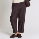 Sac en daim taupe – Pantalon Benjamin marron taille S – Kimono Wabi écru – Legging MAÉ kaki taille XS – Gilet taupe JAMIE taille S/M