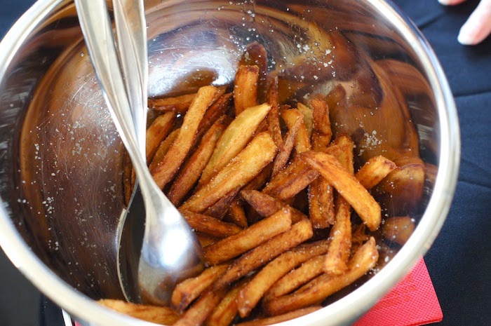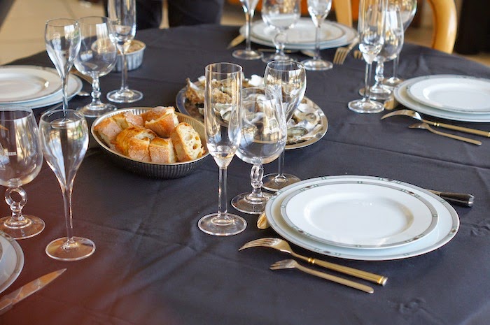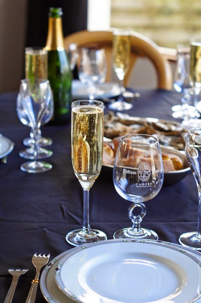 13h00 : Déjeuner chez mes parents ! Un repas parfait, champagne, huîtres, poulet fermier & frites maison, le tout avec un feu de cheminée et du bon vin..