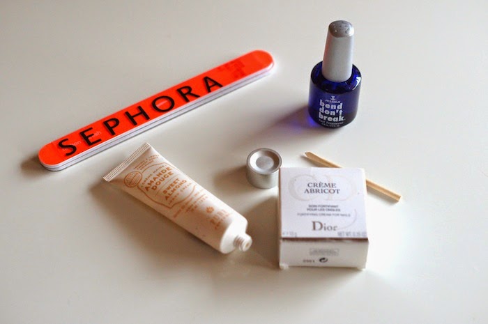10h00 : Exceptionnellement, j’ai voulu faire l’effort de me faire une manucure. J’utilise la crème Planter’s à l’Aloe Vera pour m’hydrater les mains (en couche épaisse en insistant sur les cuticules). Et après 10 minutes à laisser poser je vais prendre une bonne douche. Après la douche chaude, je peux repousser plus facilement mes cuticules, je les hydrate à nouveau, je lime, puis je pose la base Bend Don’t Break, & un vernis noir.