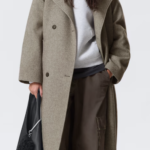 Manteau bicolore COS – Manteau cape marron H&M – Manteau gris SUNCOO – Manteau vert foncé COS