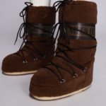 Écharpe marron ASOS – Bonnet marron ASOS – Cagoule noire H&M – Bonnet léopard BALZAC – Moufles léopard BALZAC – Bonnet beige COS – Moufles beige COS – Gants en cuir SŒUR – Moonboots Bordeaux ASOS – Boots OYSHO – Moonboot noires – Moonboot marron